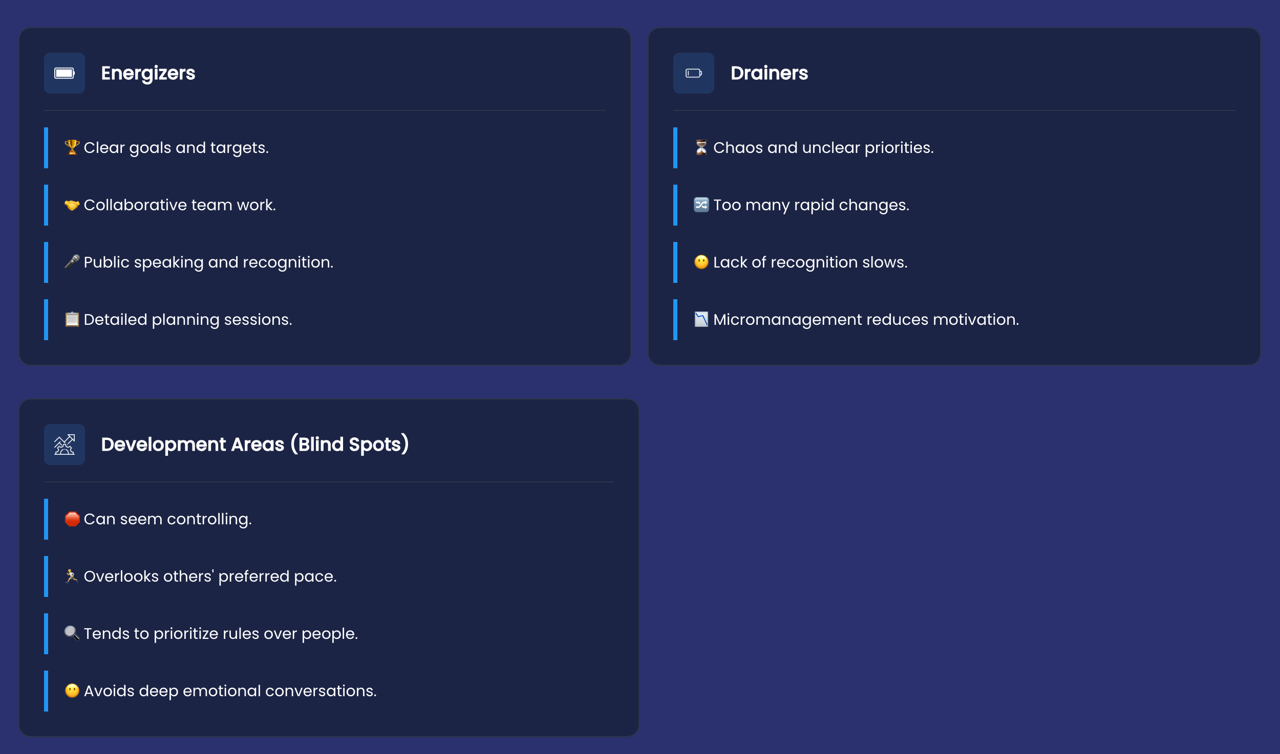 - Enhance self-awareness and mutual understanding – We help leaders understand their own behavioral styles, communication preferences, and decision-making approaches, while also gaining insights into their peers’ working styles. This mutual awareness reduces friction, improves collaboration, and helps leaders appreciate diverse perspectives within the team.