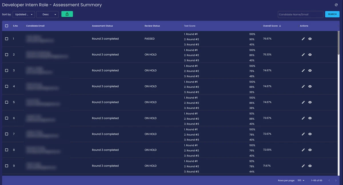 Save your effort and time by automating the entire assessment process from initial screening to final evaluation.