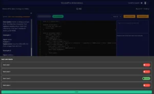 • Evaluate real coding ability with language selection, test cases, auto-evaluation and solution review.