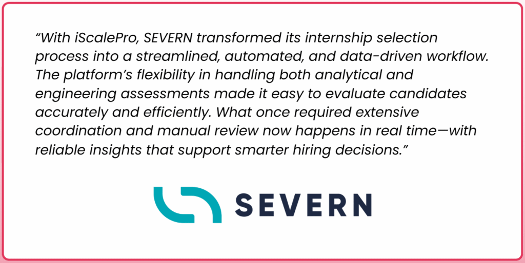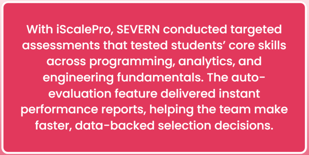 Before using iScalePro, SEVERN’s internship selection process involved multiple rounds of manual testing and interviews. This created challenges such as: